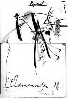 Bei den Blättern steht das explizit Handschriftliche für eine Originalität ein, die durch Wiederholung als solche bestritten und als Schein bloßgestellt wird. Das Versprechen von Authentizität, das in der Handschrift liegt, wird durch Wiederholung gebrochen, das Handschriftliche als Zeugnis künstlerischer Erfindungskraft Lügen gestraft. Und dennoch kann man sich dem Authentizitätseffekt dieser überbordenden Produktion, der Fülle des scheinbar schnell Skizzierten nicht entziehen: Sie bezeugt eine unerschöpfliche Erfindungsgabe, die die Geste der Wiederholung leugnet.